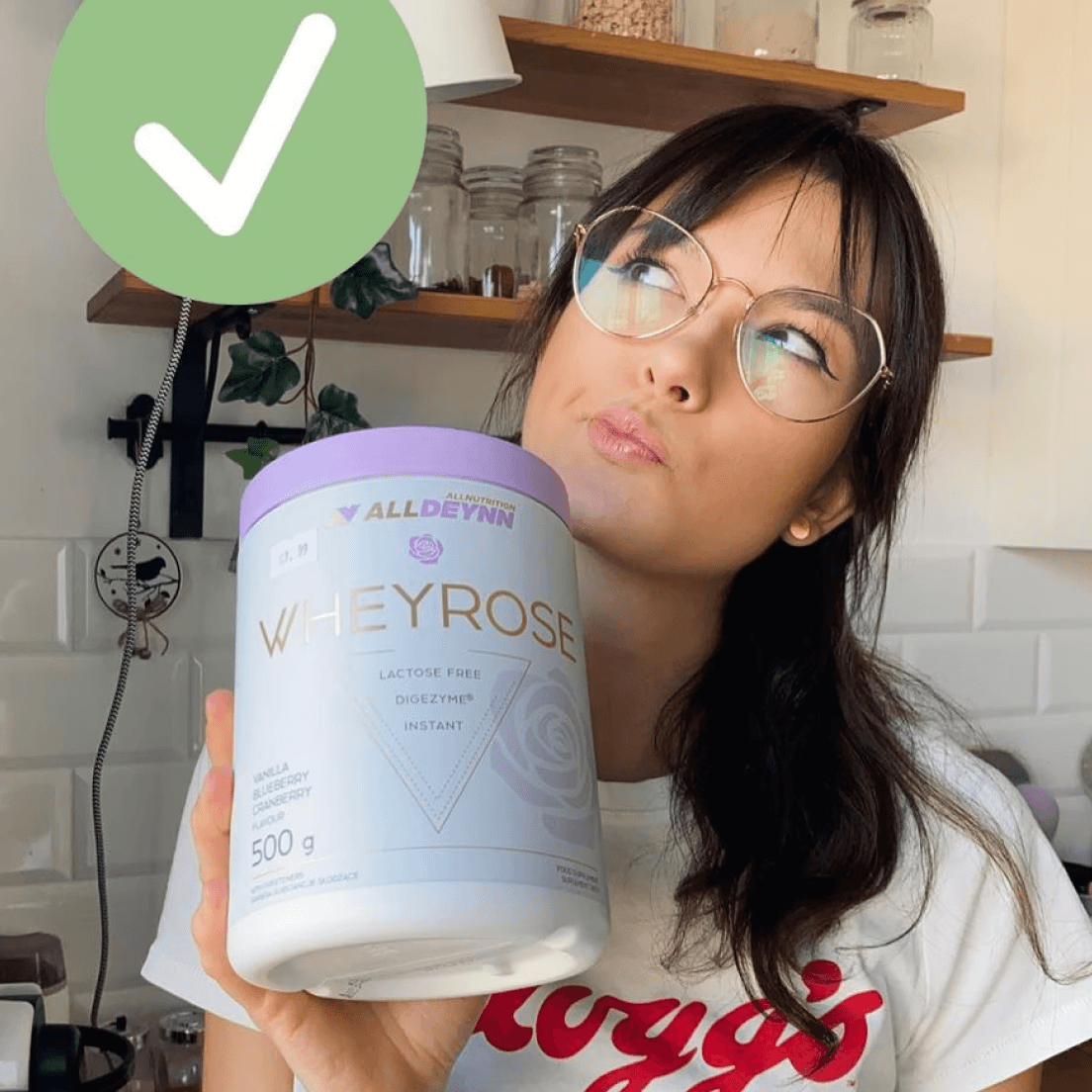 Białka od @alldeynn kupiłam z czystej ciekawości 🙈 przepadłam, bo JEST CZADOWE! bardzo dobry smak! Nie za słodki, super się rozpuszcza i ma kawałki liofilizowanych owoców 🍓 Nie ma dodatku cukru, jest bez laktozy. 30g to aż 22g białka!
